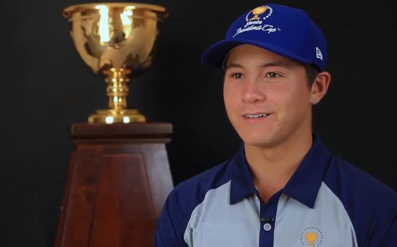 2017, age 16: Junior Presidents Cup- Represented the International Team and won his Singles match. Link here.
