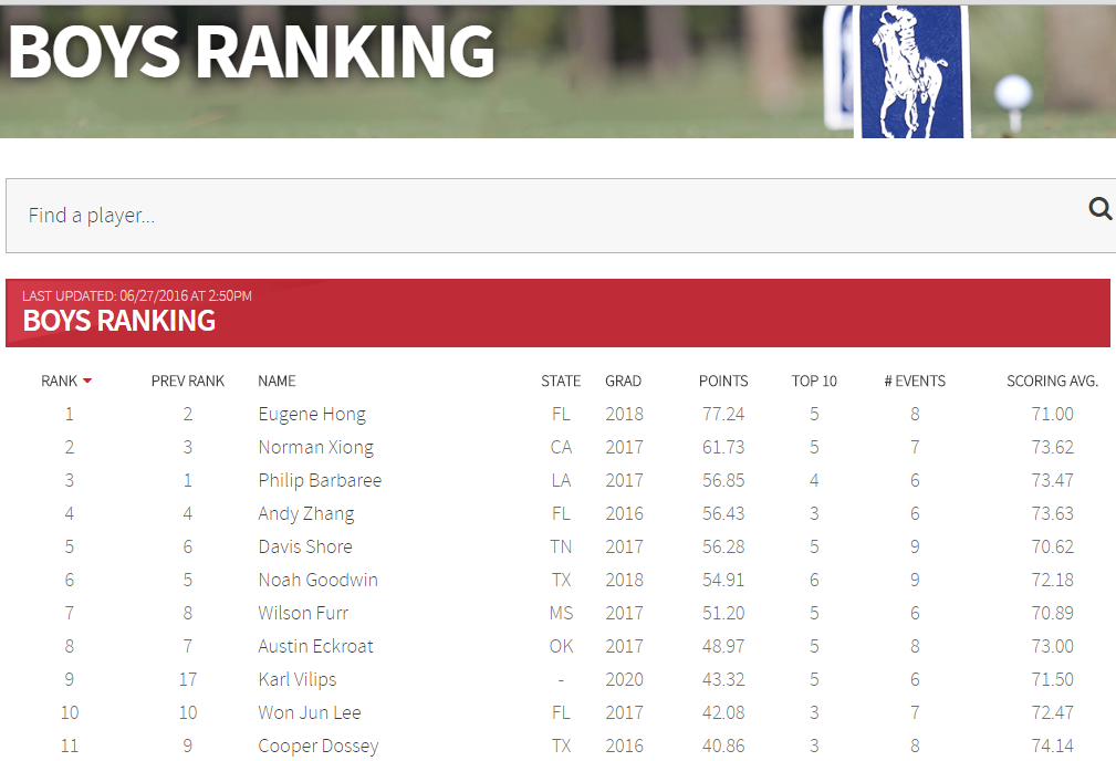 2016, age 14: Tied 3rd at Haas Family Invitational, new overall Polo Ranking is 17.