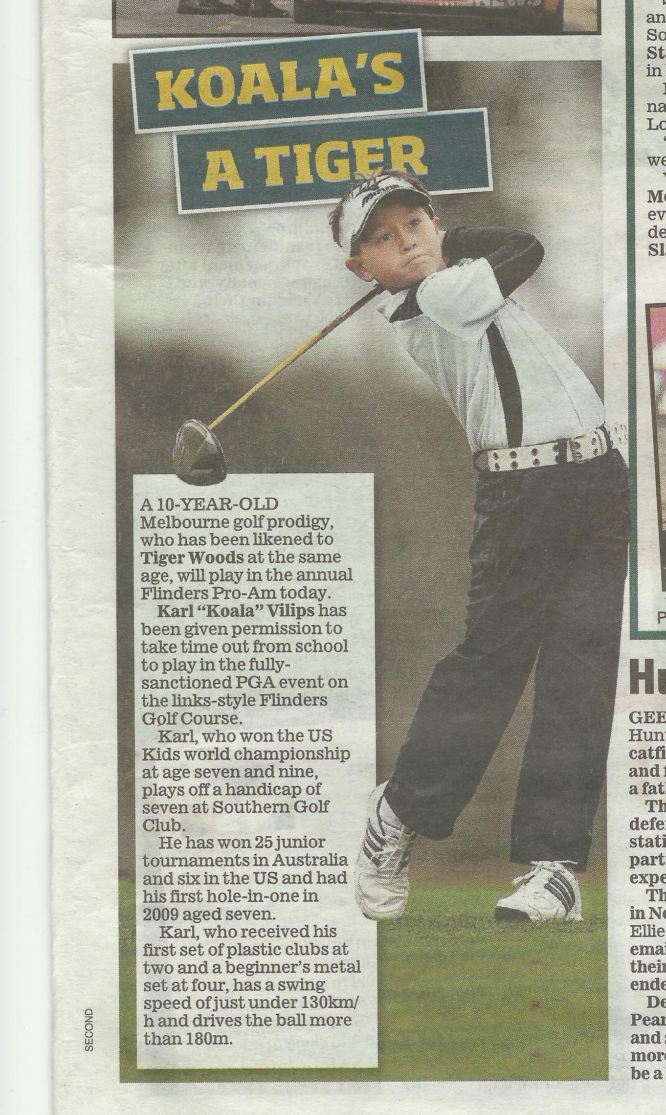 December 15: 9 Year old Karl misses the cut of Australia's 2010 "Greg Norman Junior Classic" in the 13 Years & Under division by a single stroke with rounds of 88, 88 & 83 off the Mens Competition Tees at the Coolangatta Tweed Heads Golf Club. For full results, click herePreviouscompetitors of this event include Adam Scott, Geoff Ogilvy, Jason Day, Michael Sim, Karrie Webb,& Katherine Hull. New Handicap: 14.4.