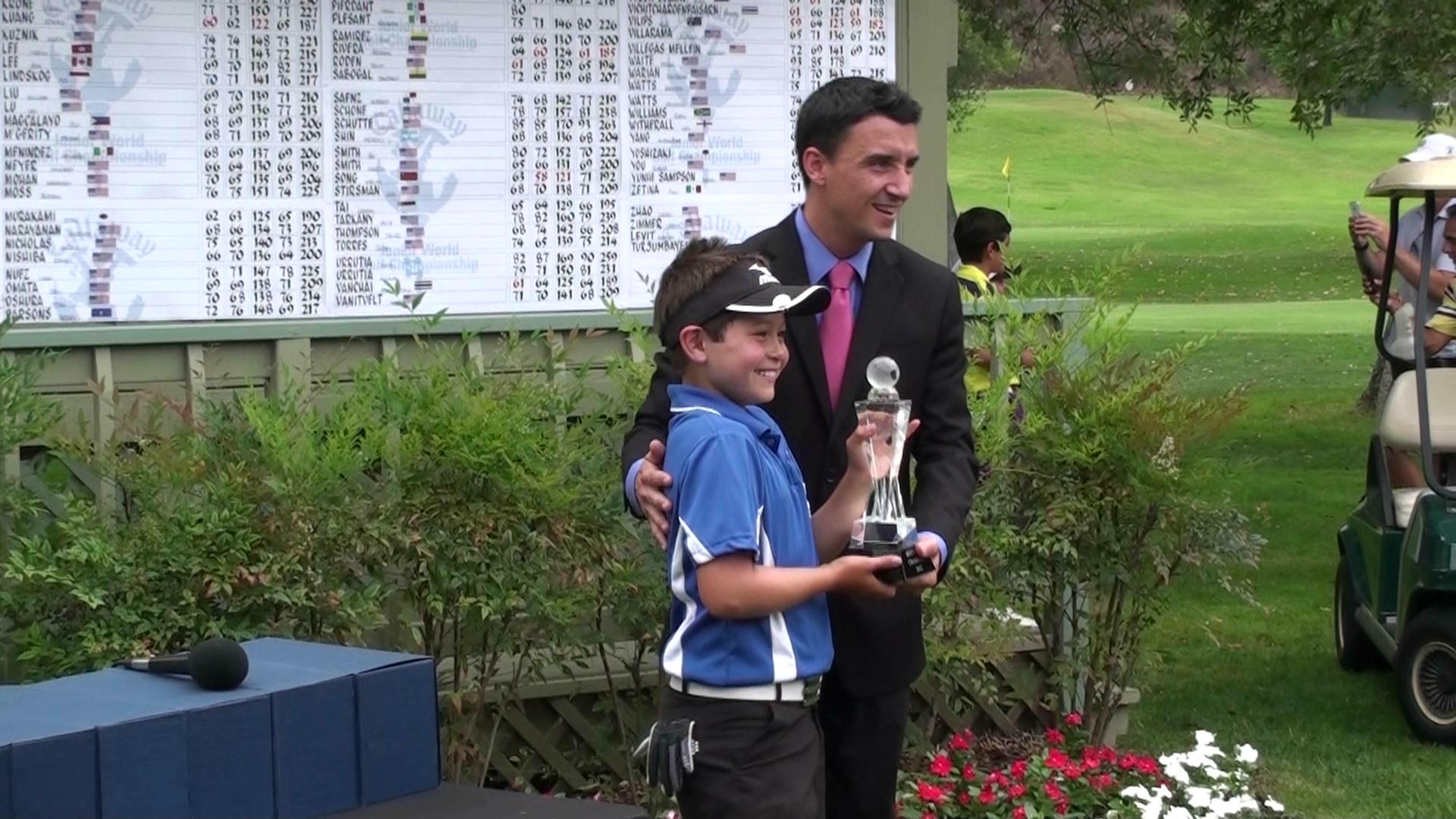 After finishing Tiew for 1st after the qualifying rounds, they played in thelongest Playoff in the history of Future Champions Golf against Alexander Pak, wherebyKarl eventually got beaten by a birdie to his Par. There's bothofficial video from the final day available at the FCG World Championships official YouTube pagewhere Karl is featured 3 times. In case you can't recognise him without shorts on, he is wearing theblack trousers and Green Titleist cap. There's alsopersonal video shot by one of the parents showing Karl playing a few shots on the final round.
